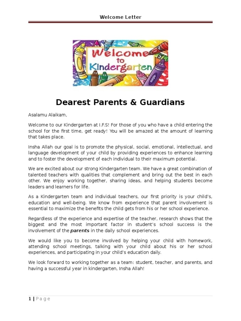 Welcome Letter For Kindergarten Sample In Pdf Word Letter To Students Welcome Letters Kindergarten Welcome Letter